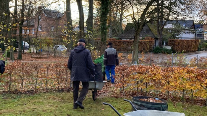 Wer einen Laubbesen hat - gerne mitbringen. Es stehen aber auch einige im Schuppen zur Verfügung.